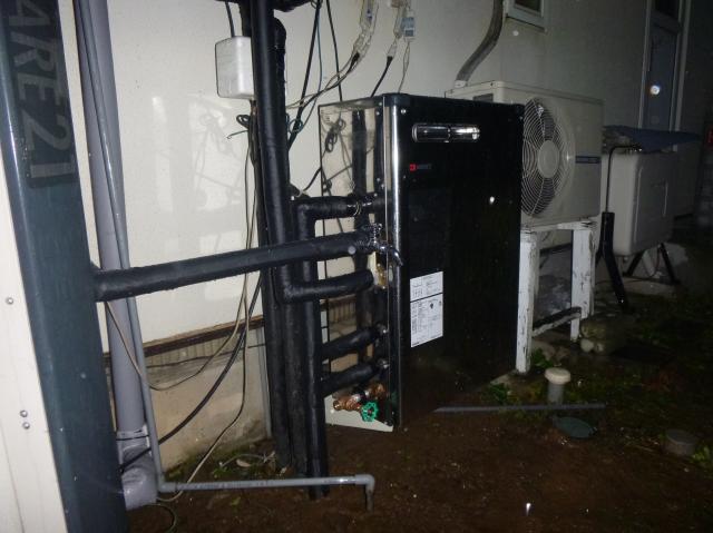 | まだ夕方の内ですが、あたりは暗くなってきました。 | 取替えリフォームを完了するのに、約一日かかりまいした。 | それだけ複雑な配管だったことは事実です。 |