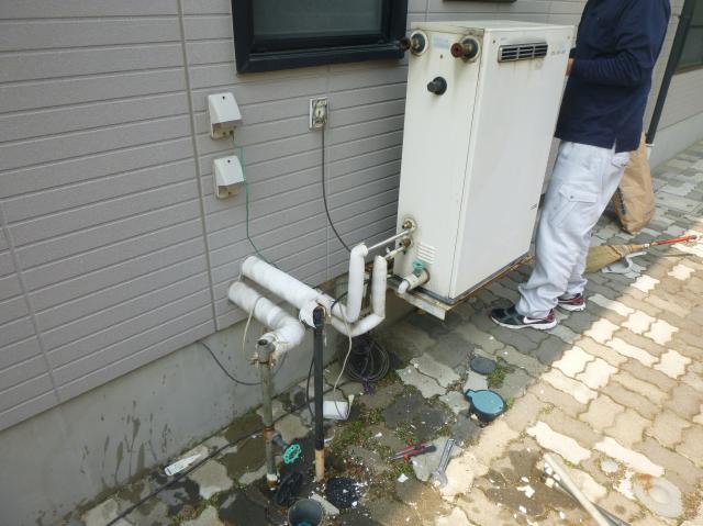 石油ふろ給湯器の取り替えリフォーム施工中
