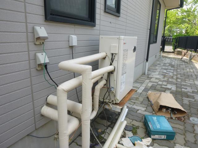 | 正常に動いてくれたので、ヒーターを巻きつけ、新しい保温材を巻いていきます。 | 古い給湯器のリモコンです。ご苦労様でした。 | 新しい給湯器のリモコンです。 |
