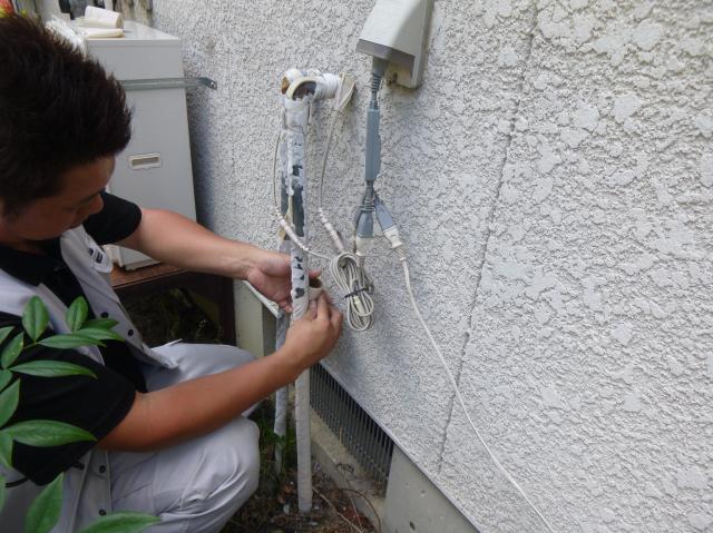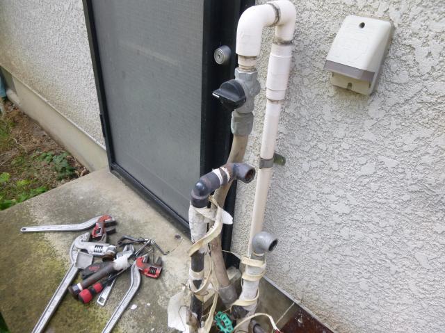 | 給水・給湯それぞれにフレキ管を給湯器に繋ぎます。 | 設備屋さんに、もう一つの管も同じようにボロボロなので直してもらいます。 | 完成です! |