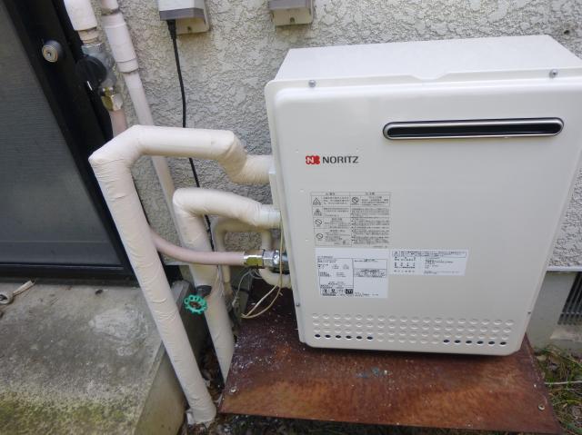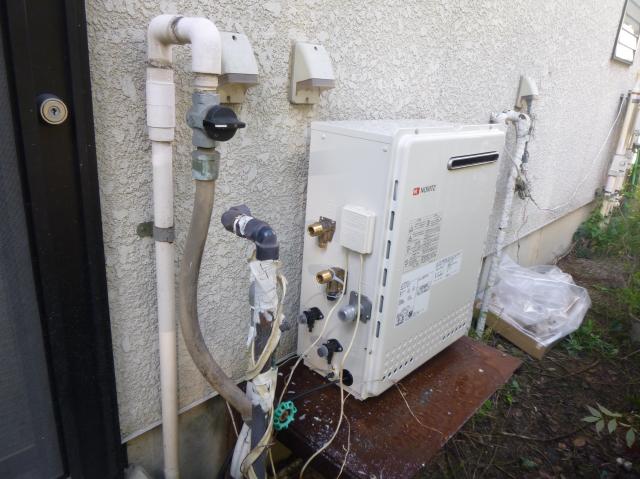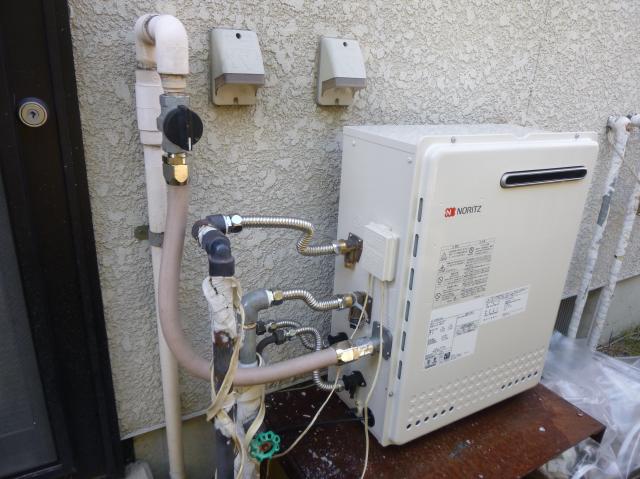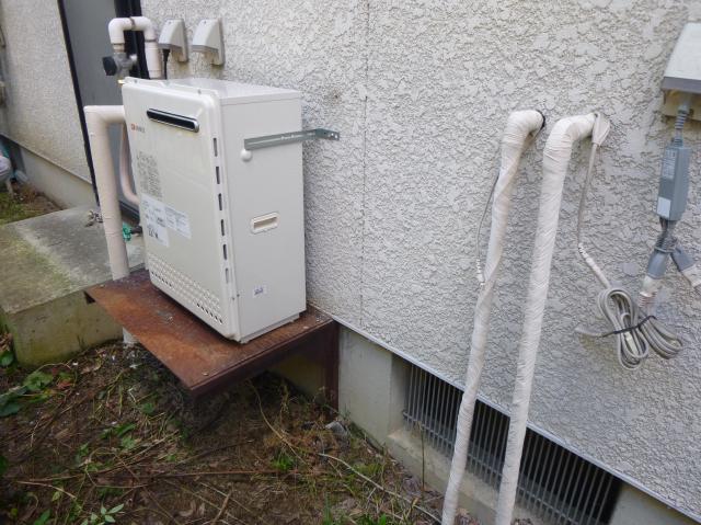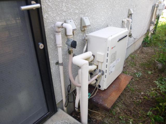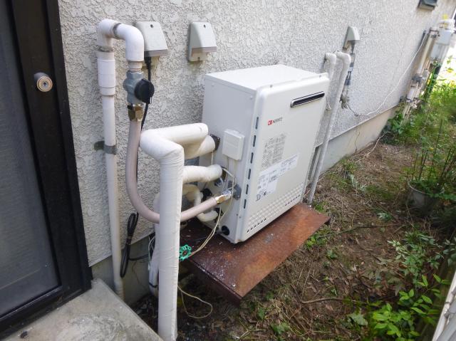 | 左側から見た給湯器。 まずは長野都市ガスさんの仕事です。 |