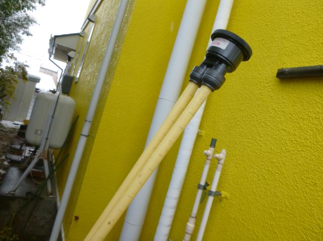 | 撤去完了です。 | 新しく接続する配管です。これ一つですべて補います。 | 必要の無くなった穴には、外れないようにしっかり止めます。 |