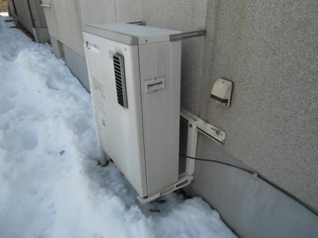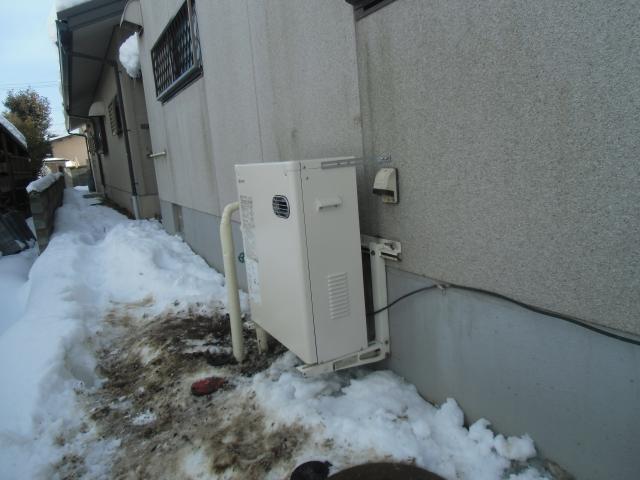 | 給湯器のお取替えです。 | 風化してしまって、化粧テープもボロボロです。 | リモコンも動かなくなり、お湯も出にくくなってしまい、長野の長い冬には厳しいです。 |