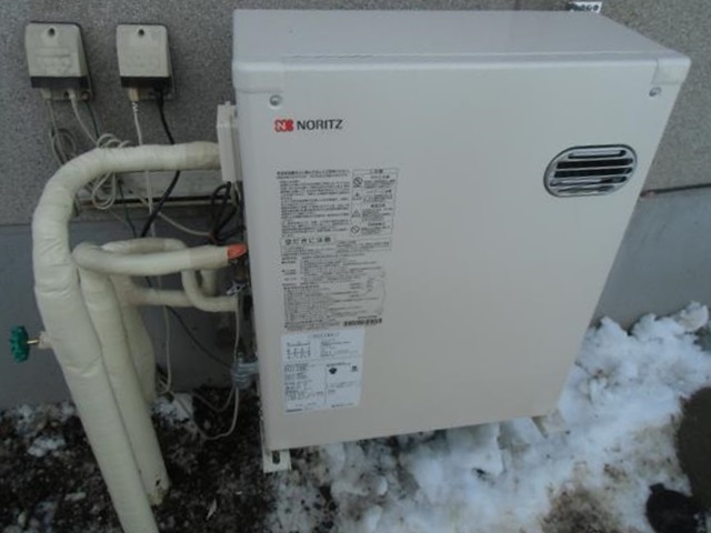 | 給湯器の取替えが完了しました。 | 追い炊きの循環、水とお湯管、石油管の接続はばっちりです。 | 風化してしまってボロボロになってしまった化粧テープもしっかり施工できました。 |