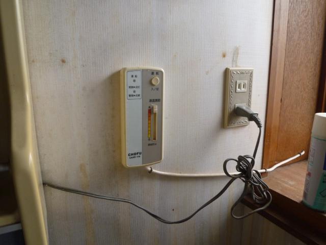 どうしても外にあるため廻りの保温材もはがれてきてしまいます。 | 脱衣所にある給湯機のリモコンです。 |