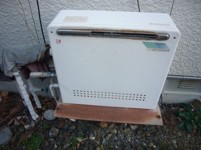 | 16年使用しました。ガスふろ給湯器です。 | 給湯もおふろ沸かしもできなくなってしまいました。 | 浴室のシャワー水栓も一緒に交換です。 |