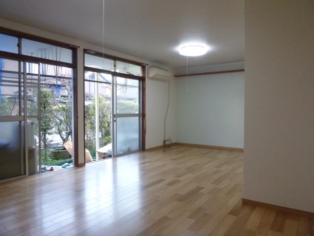 | 6帖2間がふすまで仕切られていましたが、ふすまは外してあり続き部屋として使っている状態でした。下がり壁も必要ないので撤去して、広く感じるようにリフォームを提案いたしました。 壁は布クロスが貼ってありましたが、劣化がひどく剥ぐことができないのでベニヤを上張りしてクロスで仕上げる予定です。 |