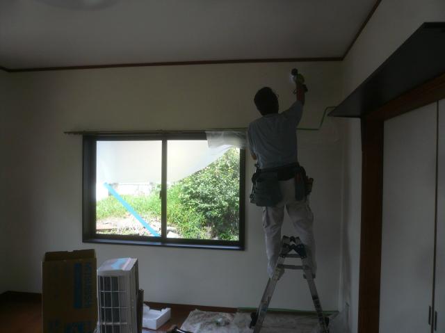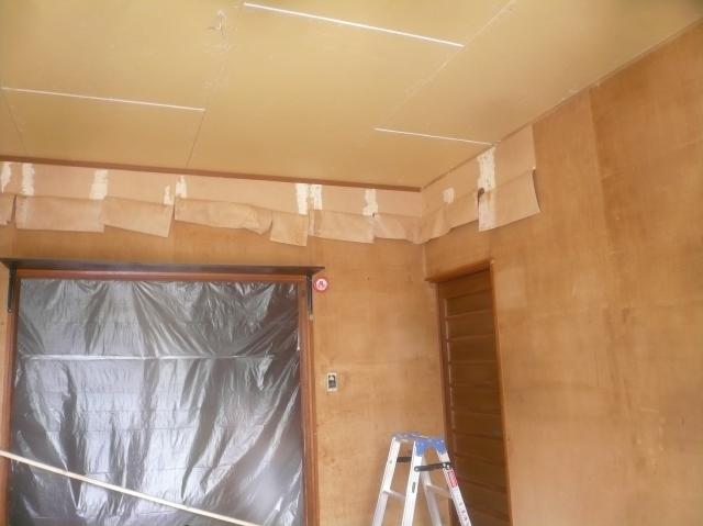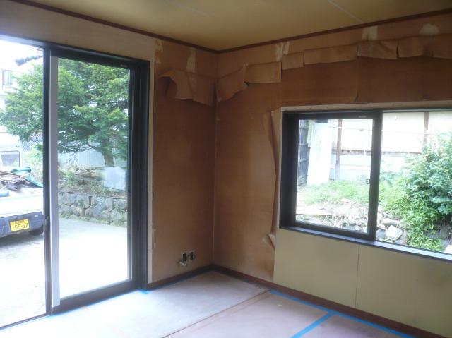 | キッチンとリビングはクロス屋さんに仕上げをしてもらいます。 | 窓のところにビニールで養生をして、塗装をかけていきます。 | 雰囲気が変わりました。 |