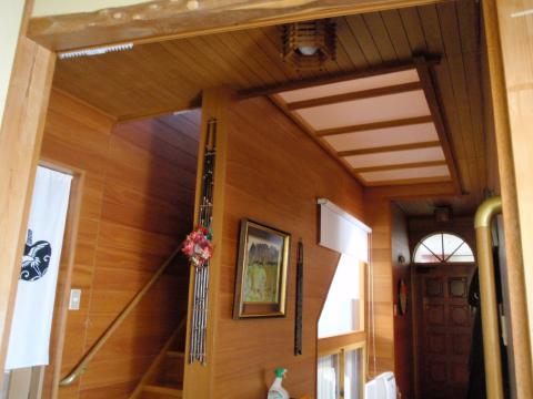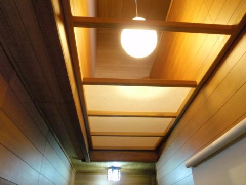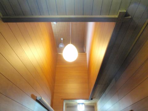 | 廊下から見上げた吹き抜けです。 2階の窓から昼間の明かりが差し込んでいます。 この明かりを無くすことは出来ません。 |
