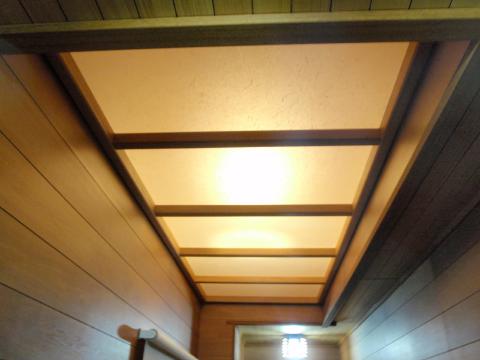 | それが終わるとワーロンの取付です。 アクリル板に和紙模様のワーロン紙を張りつけてあり、明かりも通るので高級感があります。 |