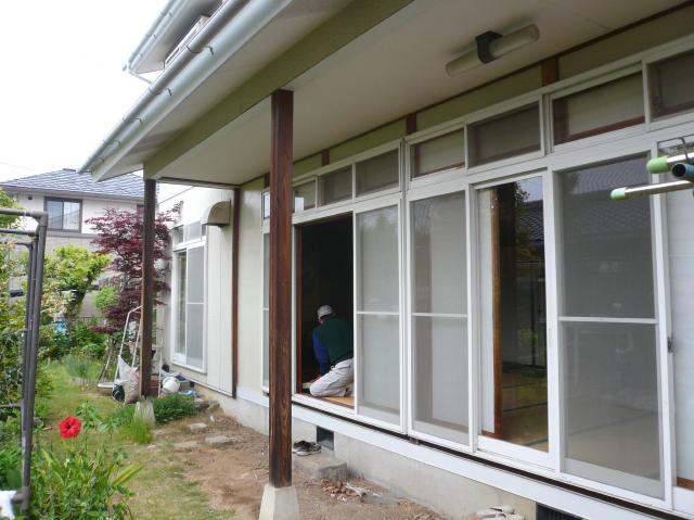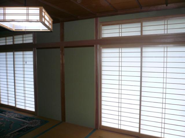 | 耐震補強した壁です。サッシは9尺から6尺になりましたが、明るさは充分取れます。 | 既存の畳も敷き込み完成です。天井などは一切壊さないで工事は完了です。 |