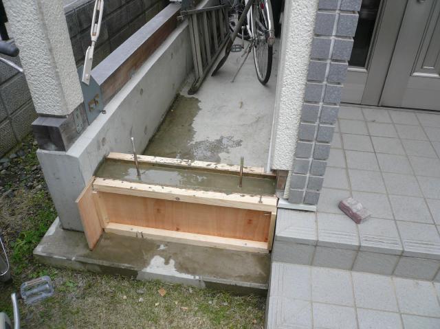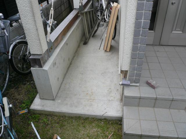 | 外壁面を撤去してしまうので、工事中の防犯やホコリが行かないように仮設の間仕切りを設置します。 | 大工さんが余計な箇所を壊さないように、サッシや壁を撤去しました。 | 布基礎が無いので、まずは型枠を組んで基礎を立ち上げます。 |