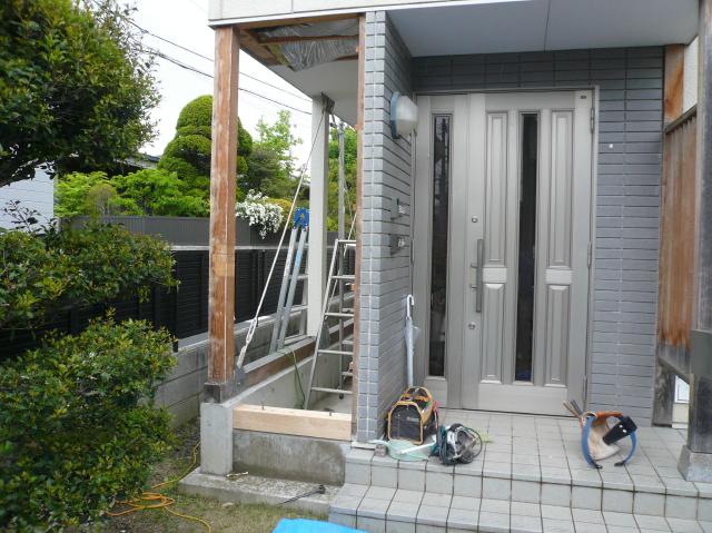 | 東面の3尺の壁に筋交いを設置します。既存の柱のサイディングを剥がして土台を設置します。 |