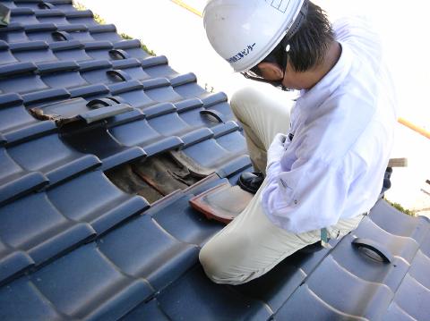 屋根瓦修理リフォーム施工前の被害状況