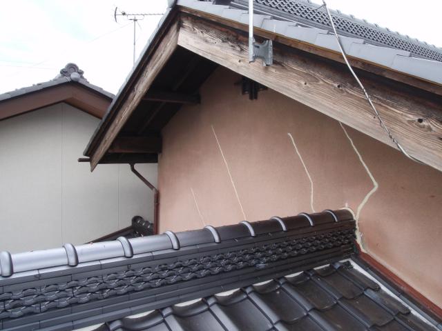 | せっかく瓦をきれいにしたけれど、外壁も痛みが激しい。大きなひび割れは自分でコーキングしたけれど、どうした物かな? 母屋と増築した部分があるため、面積もかなり大きくなってしまう。何処までやろうか悩んでしまう?また今現在はリシンの壁、どんな物で吹きつけをしたらいいのかもと言うことでした。 |