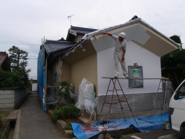 | とりあえずは予算の問題もあるので、母屋部分だけの見積りをすることに。廻りが駐車場だったり、路地に面したりしているので吹きつけによる作業は止め!刷毛ローラーを使った塗装にて行う事をご提案。材料はここ数年開発されて出てきた、水性シリコン系のリフォーム用塗料。出てきたばかりの7年前、初めて使用してみて、その耐久性と、表面の滑りの良さで汚れが付きづらい事に驚きました。 外壁の色ですが、当初白がいいと言う事でした。Y様邸には母屋とそれにつながる増築部分と、別棟の新しい建物があります。新しい建物はまだ塗装の必要はないのですが、増築部分の塗装を残すと、自宅が3色になってしまいます。また打ち合わせの中で奥様がいいというご近所の家の外壁の色を見てくると、新しい建物の黄聚楽風の色合いでした。 そこで、予算は上がってしまいますが、新しい建物の黄聚楽に合わせた色で、母屋と増築部分も塗装をしませんか!そうすると建物全てに一体感が生まれ、落ち着いてどっしりとした和風のたたずまいになります。と提案させて頂きました。 |