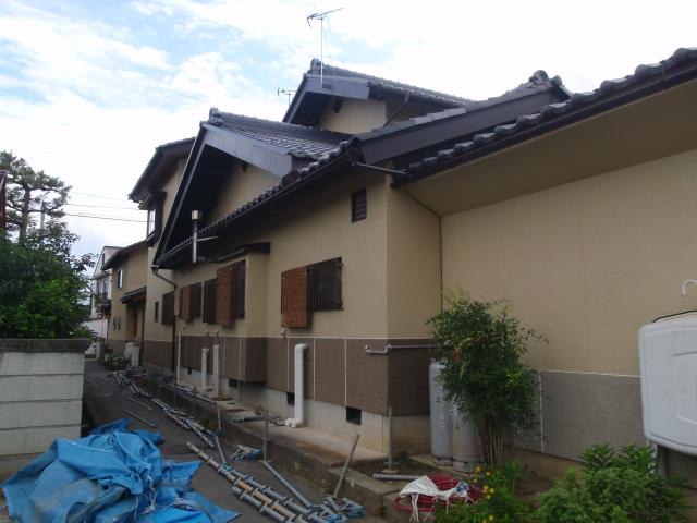 屋根から外壁リフォームまで一連の工事を担当しました伊藤です。 一番新しい建物に色を合わせると言いましたが、それが結構大変。材料も違うし、時間も経っている壁の色・・・2回も色見本作りましたが、そのかいあってバッチリ合わせる事が出来ました。 よかった、ホッ! Yさん何度も大きな屋敷に見えるなって言ってましたが、実際大きなお屋敷なのですから。でも一体感が出ると本当に大きいなって感じがします。路地に沿って向こうまで続く家が、全て1軒の家なのですから。本当にうらやましい限りです。 |