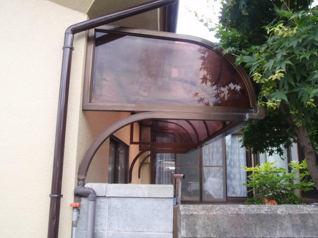 塗装が終わると、今度はアルミの下屋の付け直し。 塗装の前に外した物を、再び取り付けます。 |