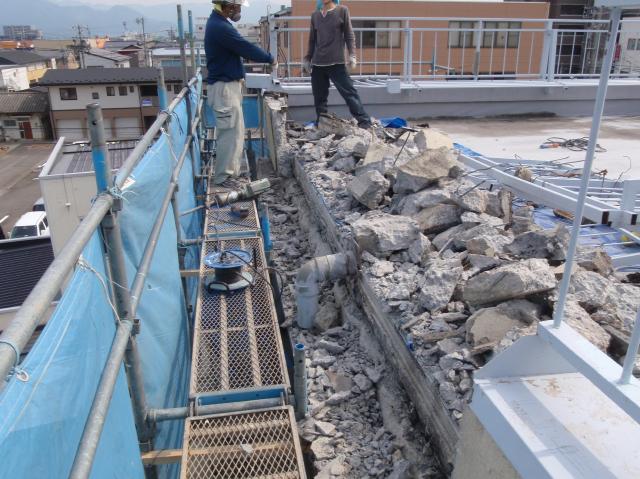 M様には現状を見て頂き、動いてしまったパラペットは撤去することに。 | 撤去した部分はコンクリートで庇のような形状にして、パラペットはやめにしました。 |