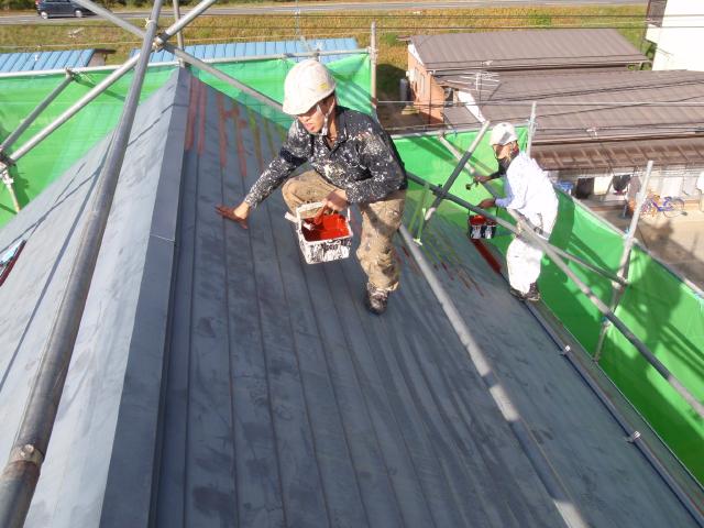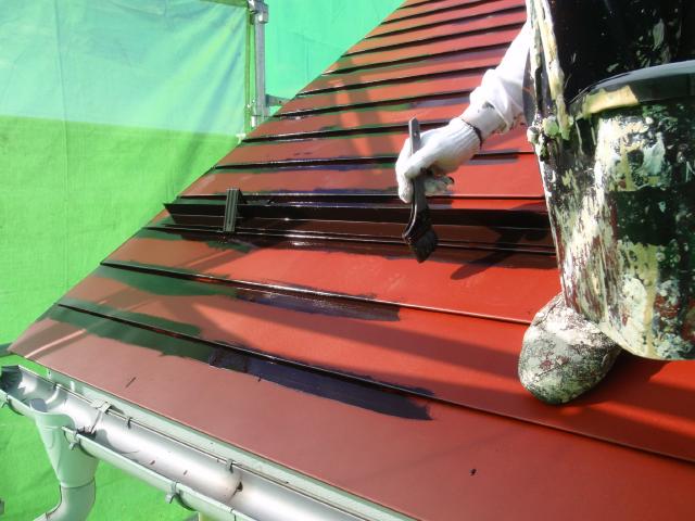 プライマー代わりに、付ともちがいいさび止めを全面塗装。それからシリコン塗装です。 | 屋根塗装完了です。 |