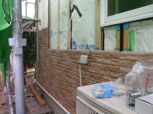 下の段から張り上げていきます。セルフクリーニング効果のある高級サイディングです。 | コーキングレス工法のサイディングです。 従来の物より、見た目も耐久もよくなりました。 |