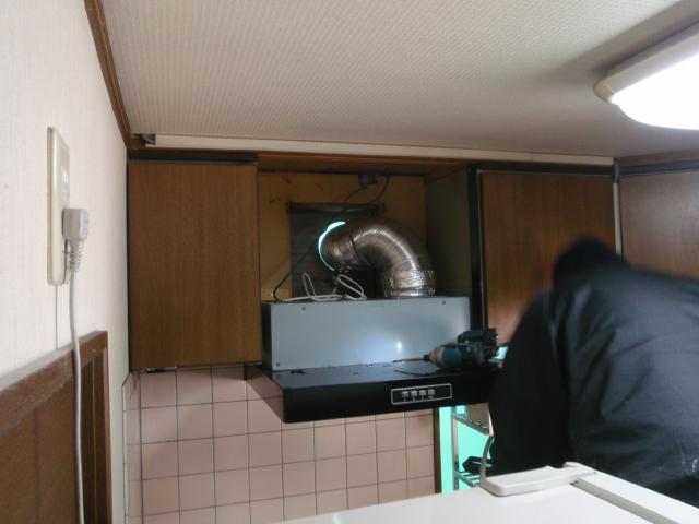 | お客様ご支給のテレビアンテナの付け替えです。 | 室内工事、古くなったキッチン換気扇をシロッコファンの換気扇に取替です。 | 換気扇取り替え完成。 |