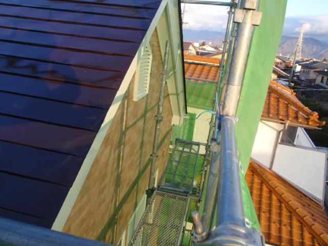| 外壁工事と平行して屋根の塗装も行います。 白化現象が起きています。十分塗り頃?と言うか、もう少し早くてもよかったかな! |