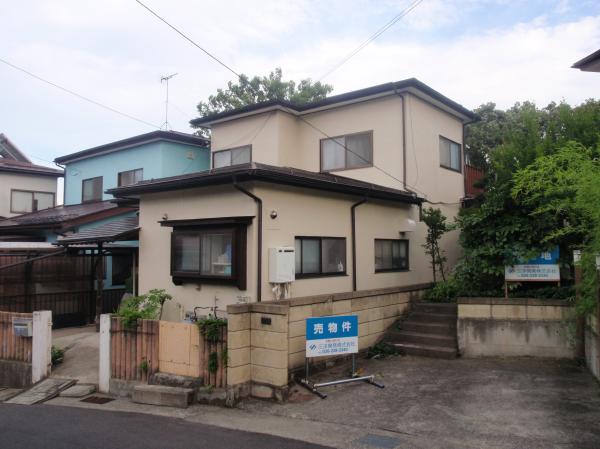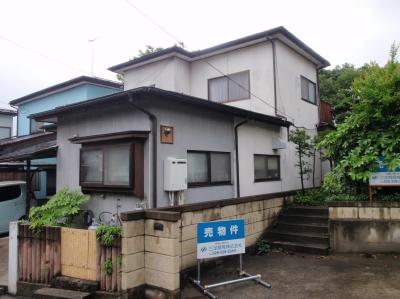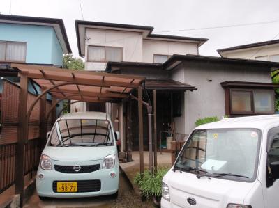 | 一部分の壁はモルタルのまま、塗装してないカ所もありました。 | 車庫もあり、お隣との間も狭い。 | 南側は、テラスになっていて、物置やエアコンもあります。 |