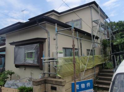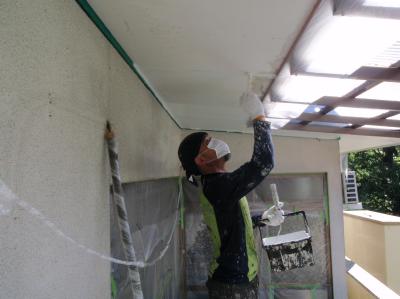 あつくなり始めたこの時期、ご自宅で寝たきりのご両親を介護されているとのことでしたので、職人さんが来られてもお茶も出せないとのことでした。そんなことはお構いなく、ただ外仕事だけでおわりますから、特にお声掛けもしないで工事を行います。 この暑い時期、エアコンを止めるわけにも行かないとのことでしたが、たいていの場合は、使用したまま塗装工事は出来ます。 |