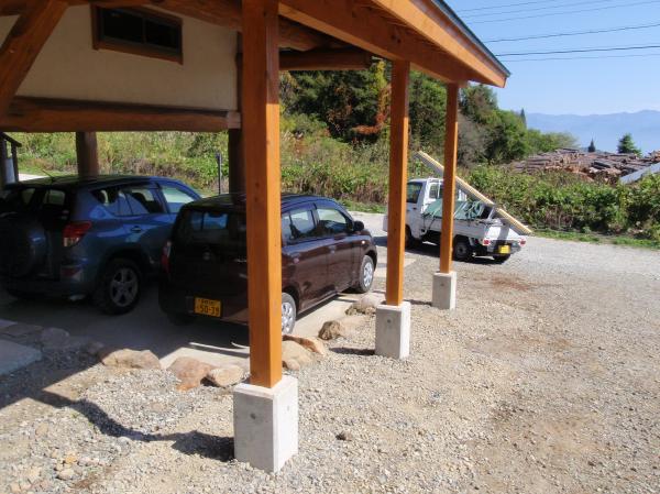 そばにはスキー場があるため、雪は軽く1m以上は降り積もります。 | それにしても秋まっただ中のいい天気です。 早くしないと、雪が降ってくる。 |