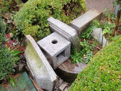 | 庭の石灯籠が倒れてしまいました。 5年ほど前にも倒れて、直したのですが・・・ |