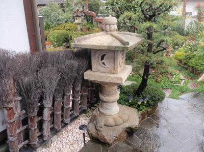 こちらが玄関先の石灯籠。立派なものなのですが、安全には変えられません! | 茶筅垣は「長年の風雪に耐えて、もうぼろぼろになっていました。 |