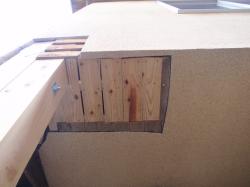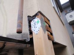 | さて着工、柱の状況を見ようとしたらドッキリ! 見るからに、危険そうです。 去年の物だったので、幸いスズメバチはいませんでした。 |