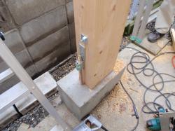 次に、既存柱の腐食した部分まで切断撤去。 新しい柱を継いで立てます。 |