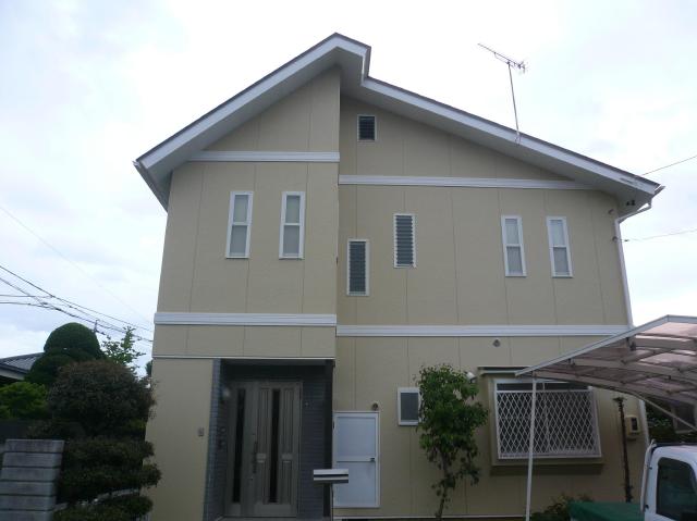 | 家を建ててから約22年たち、外壁の傷みが目立つようになってきていました。外装工事の前に耐震補強工事をしていたので、一部外壁の色も違うので思い切って塗装工事をするようにしました。 | |