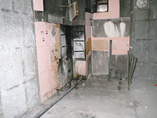 | お話が合ってから早5ヶ月、やっと工事開始です。施工前の店舗の状態がこちらになります。 | 配管や、コンクリートの解体はさすがに大変、こちらでやることとなりました。 | 奥から入口側を見たところです。解体工事はご自分でおやりになりましたが、さぞかし大変だったことでしょう! |
