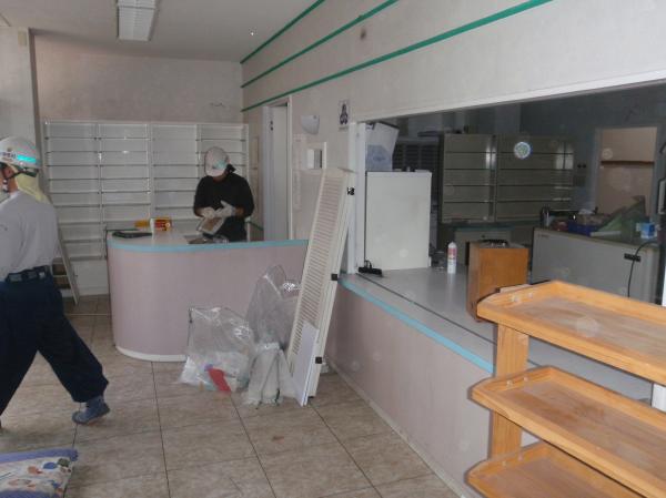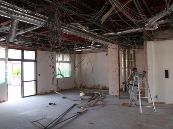 | まずは、備品の片付けから | 間仕切りも撤去 | 天井も撤去します |