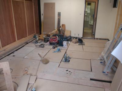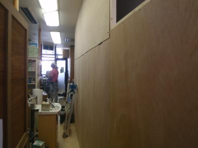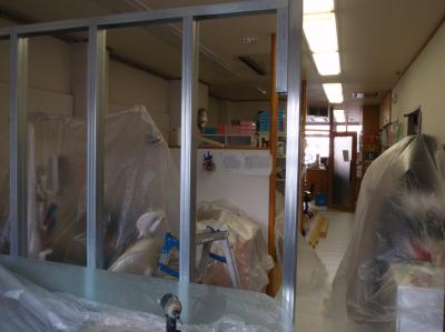 | まずは、養生から | お盆の期間だけでは無理なので、7月の日曜日から工事に入ります | 診療室の新しい間仕切りは、最初に作っておきます |
