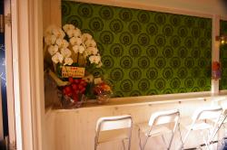| いよいよプレオープン! 胡蝶蘭 のお祝いです。 | キッチンから見た客席カウンター! | 入り口を入ると、右がカウンター 正面奥が、ステージになります。 |