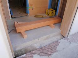 玄関框には枕木の新品を使用。 材種は"ケンパス" 硬くて重たくて加工は大変です。 |
