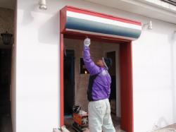 外の、床屋さんのようなシャッターも、赤に塗り直します。 |
