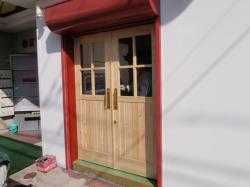 | 入口のドアの取付も完成しました。 このドアも赤く塗る予定です。 |