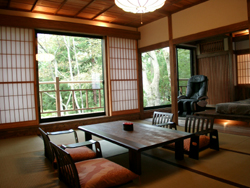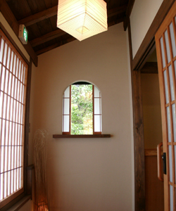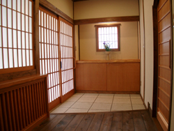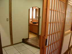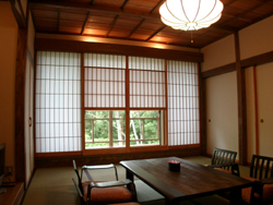 | 玄関も広々としました。 | 障子も変えました。 | 外を見ながらゆっくり温泉はいかがですか? |